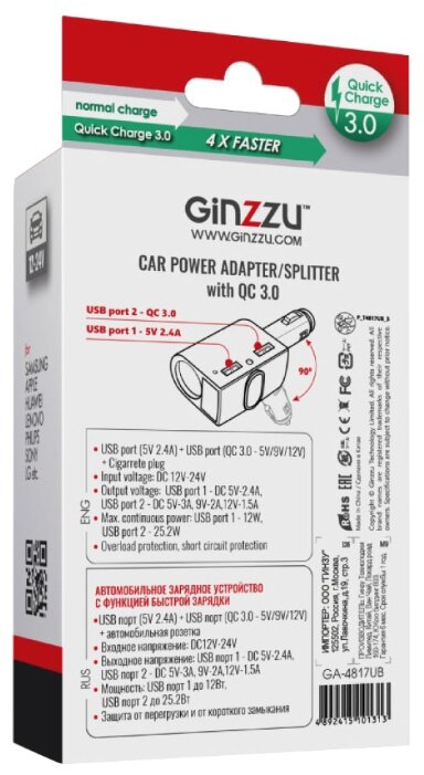| Тип: | Автомобильная зарядка |