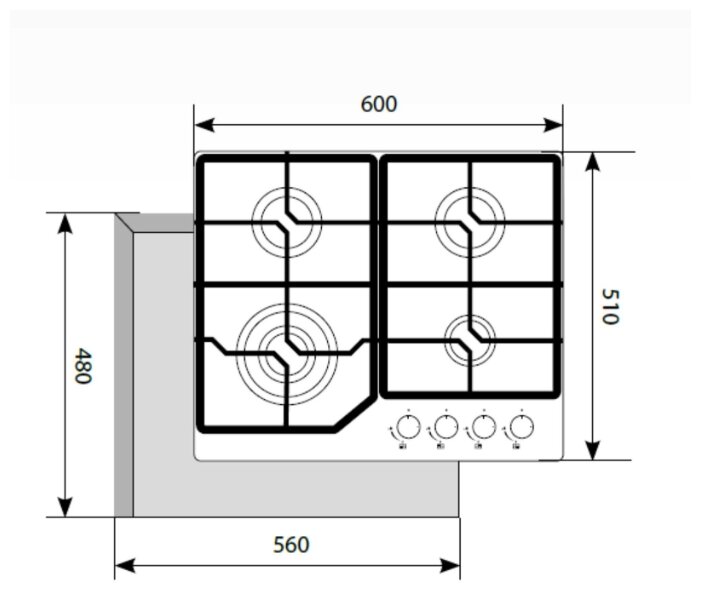 | Тип панели: | Газовая варочная поверхность |