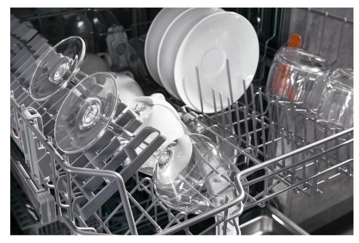 Машинка справляется со своей задачей на все 100%. Вместимость отличная (семья из 5 человек), однако, есть сложность с размещением салатников с высокими краями, не убираются в положенные для тарелок отделения. Но, думаю, это у всех посудомоек так. Приходится мыть как бокалы на верхней полке или как кастрюли, складывая секции гребенок, что существенно снижает объём загрузки. Использую только одну программу - ЭКО, поскольку она самая экономичная, а для нас это важный фактор. Днём копим, ночью моет. Утром дверца всегда открыта. Возможно это из-за излишне приложенной силы, но у меня уже сломался один из держателей под фужеры, что на верхней полке. Не думаю, что это плохой пластик. Скорее я перестаралась, когда хотела сложить его.