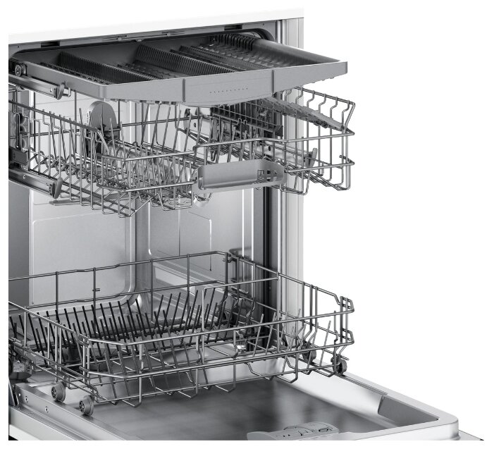 Машинкой пользуемся около 4 месяцев, нареканий нет. Посуду моет чисто, чище прошлой Samsung. Под впечатлением качества даже записал видео-отзыв - https://zen.yandex.ru/media/id/5fab145552b93d19c55c8d54/otzyv--posudomoechnaia-mashina-bosch-serie-2-smv25ex03r-5fadaa814278375e7ead00e8 или https://youtu.be/UY4nDwJm2nQ Размещать посуду удобно, т.к. грамотно продуманы слоты, нет отдельных подставок (под ложки), как в Samsung, которые нужно было отдельно ставить. Средний уровень регулируется по высоте, что важно при размещении большого количества высокой посуды. Из главных плюсов: Тишина работы и качество Качество мытья и сушки легко оценить, если пользовались относительно недорогими машинками или не пользовались машинками ранее – чистая посуда как новая, как будто продезинфицировали в автоклаве Индикация на полу Изменение положения средней полки по высоте Вместительность Минусы пока не выявили. Есть ощущение, что после мойки, в камере присутствует технический запах. Пока не поняли в чём причина, возможно из-за относительного малого срока использования машинки.