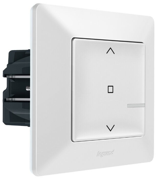 Заменяет традиционный выключатель (электронный или электромеханический); позволяет управлять рольставнями непосредственно или дистанционно, с помощью умных беспроводных выключателей рольставней, приложения Legrand Home+Control или голосовых помощников; комплектация: умный проводной выключатель рольставней, декоративная рамка, защитная крышка, инструкция по монтажу |