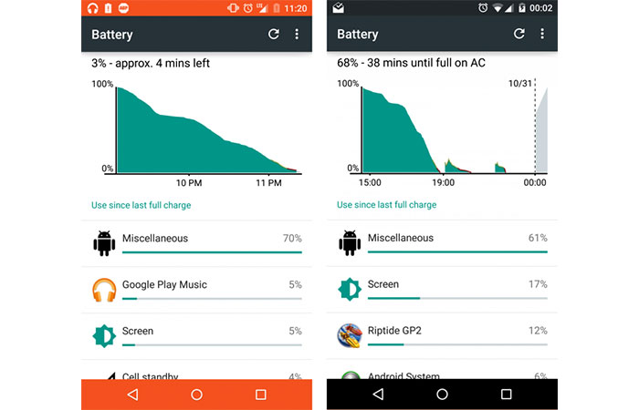 Не менее важным моментом является то, что некоторые смартфоны на такой же операционной системе расходовали заряд даже в режиме простоя. Допустим, вы ложитесь спать и ваш телефон лежит спокойно рядом на тумбочке, а наутро вы видите, что он наполовину израсходовал свою «энергию». Так вот, батарея Huawei Nexus 6P, поубавилась всего на 7%, что действительно является высоким показателем. Что касательно зарядки смартфона, то производители не советуют использовать китайские USB-кабели, это не только отразится на скорости подзарядки, но может и негативно сказаться на аккумуляторе.