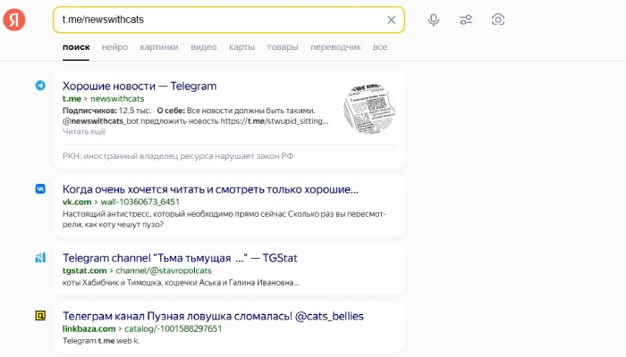 Могут выдаваться не только Телеграм-каналы, но и чаты или пользователи, требуя дополнительного фильтрования.