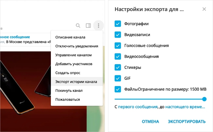 Telegram предоставляет возможность экспортировать и сохранить ваши чаты и сообщения. Чтобы воспользоваться опцией, выполните следующие действия: